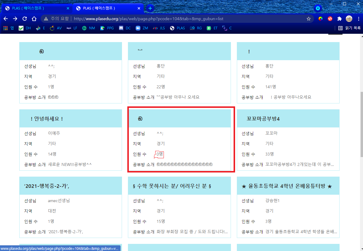 만든 담에 잘못 만들어서 삭제할려 하다가 공부방 검색에서 공부방을 누르니까 가입 취소하기가 있어서 클릭하면 공부방이 삭제 될 줄 알고 가입 취소 눌렀더니 0명이 됐네요 ㅠㅠ 다시 가입 신청 눌렀는데 가입 승인 해줄 사람이 없어서 가입은 안 되고 ㅠㅠ 삭제해주세요![]()