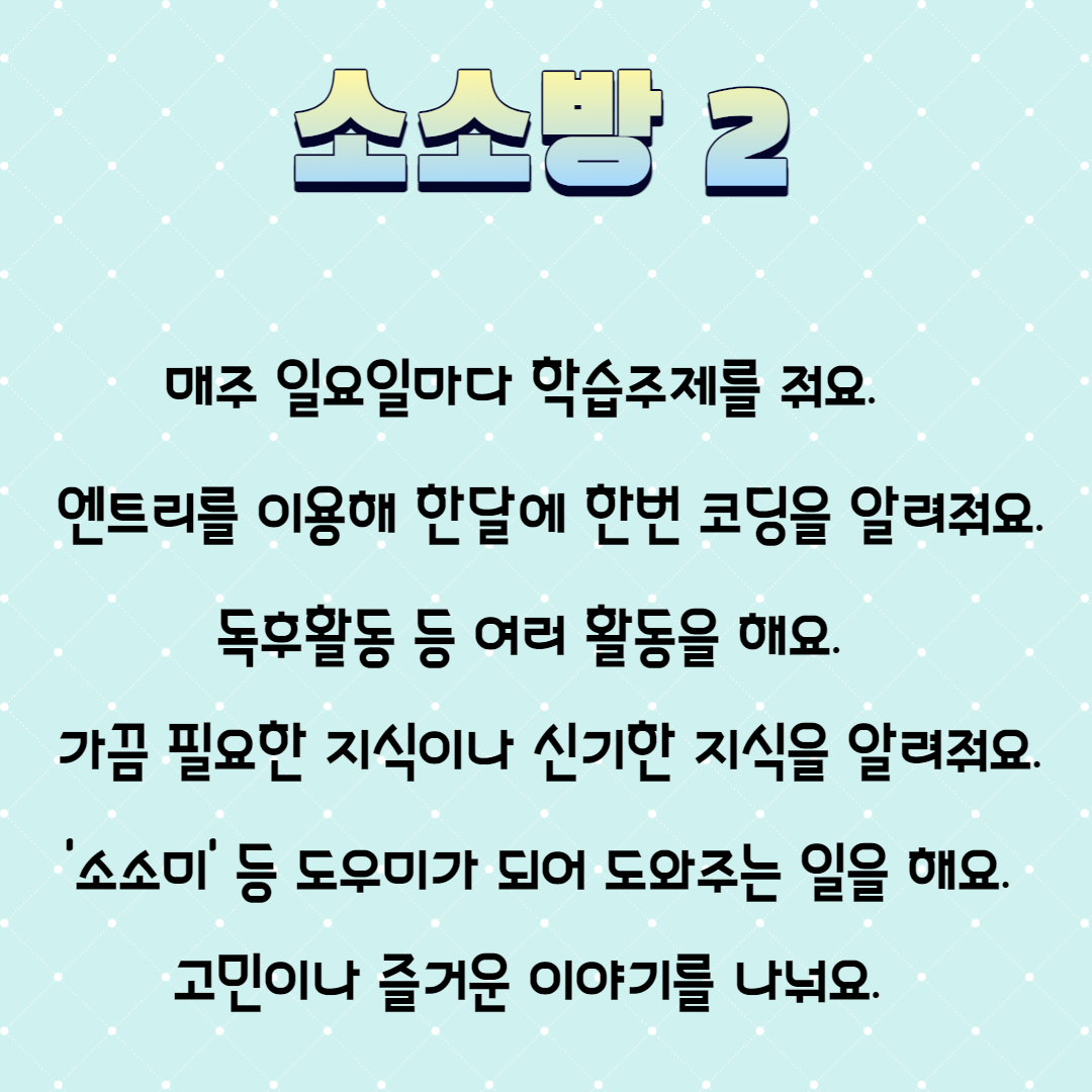 대신.. 소소방 1,2,3.. 등으로 만들었는데 가가멜 공부방보다 더 재밌게 운영할려고 해요